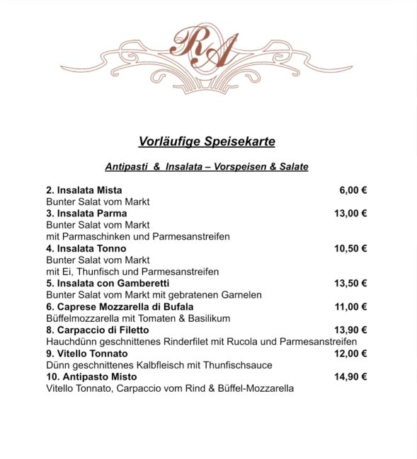 Zusätzlich zu unserer vorläufigen Speisekarte