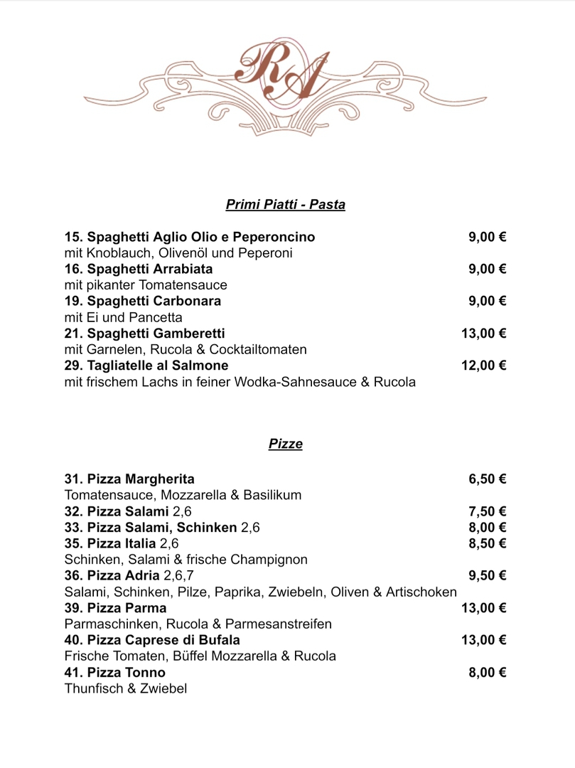Warme Küche bis 21Uhr Montag und Dienstag Ruhetag
